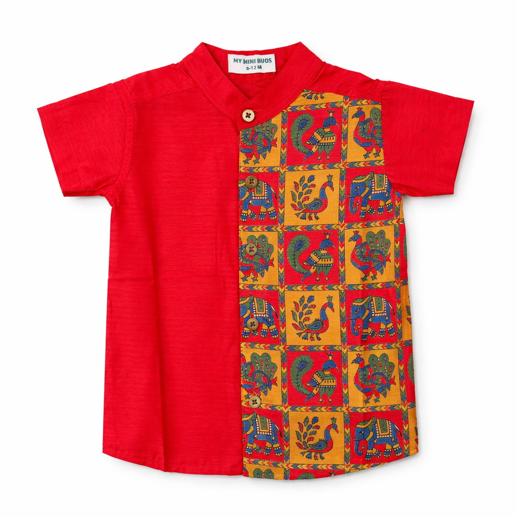 Shop Festival collection premium Raw silk cotton & pichwai , kalamkari Indian art inspired panel shirts for baby boys and kids (6–12M to 10Y). Elegant, breathable, and festive wear for pongal , weddings & cultural events. A stylish half-and-half festive shirt crafted with a soft cotton outer finish A slightly firm inner weave for a structured look. This MyMini exclusive design gives a premium festive feel while keeping your little one comfortable and they look like a true princes in this unique mymini design We intentionally keep the fit relaxed so children can move freely and wear the outfit comfortably for longer hours.4-6, 6-7 yr and 8-9 yr kids Sizes are kept slightly loose for comfort Perfect for growing kids.For slimmer kids or a sharp festive look, a small tuck or adjustment is usually enough.