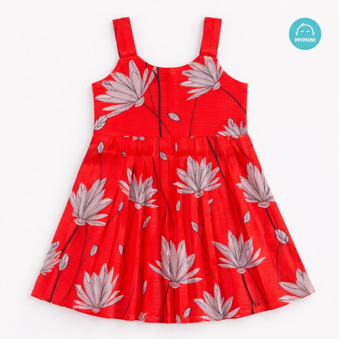 The MyMiniBuds Little Maharani kotta Cotton Frock is crafted from cotton fabric featuring intricate flower prints. Designed with a soft inner lining for comfort, this sleeveless frock ensures your little one stays festive-ready and comfortable all day long.