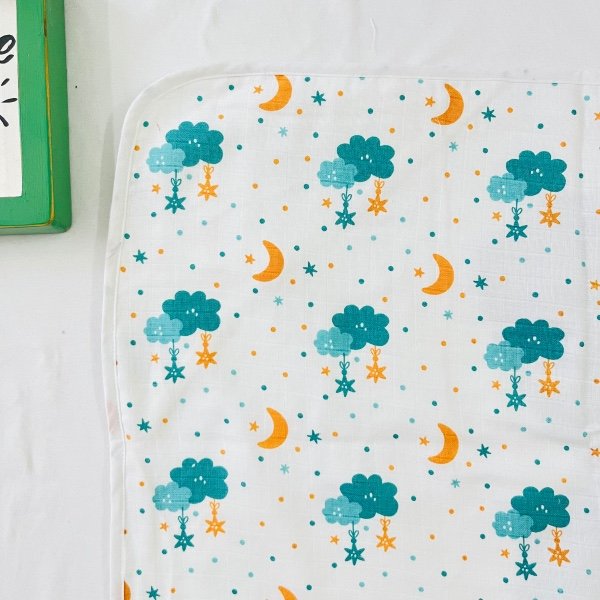 Discover the ultimate in baby luxury with our organic muslin hooded towel, generously sized at 80×80 cm. Crafted from premium organic muslin fabric, this towel offers a gentle embrace for your baby’s sensitive skin. With two charming prints on each side, it adds a touch of whimsy to bath time. The hooded design provides extra warmth and comfort, creating a snug cocoon for your little one. Elevate your baby’s post-bath experience with our thoughtfully designed, double-sided organic muslin hooded towel.
