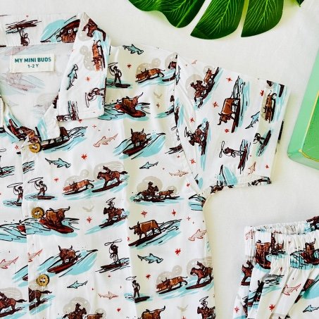 Let your little one swim into comfort with this stylish cowboy Print Shirt & Shorts Set, designed for everyday play and happy moments. Made from soft, breathable cotton, this set keeps your child cool, comfortable, and free all day long.