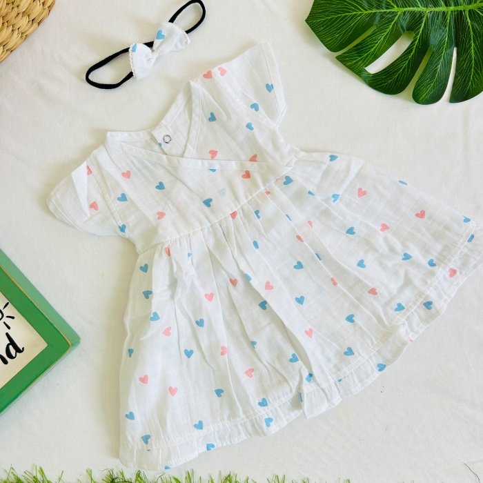 Wash Care: Keep your My Mini Buds’ Pure Muslin – Cotton Baby Dresses as lovely as ever with gentle care. Machine wash in cold water with a mild detergent. Use a delicate cycle to maintain the softness. Avoid bleach and tumble dry on low. For lasting charm, air dry or line dry in the shade. Your little one’s style and comfort preserved with love.