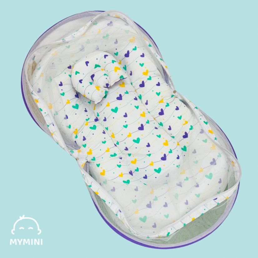MyMiniBuds newborn baby bed with mosquito net soft cotton mattress, anti-allergenic filling, safe, breathable & perfect gift for new parents ,indoor and outdoor travel